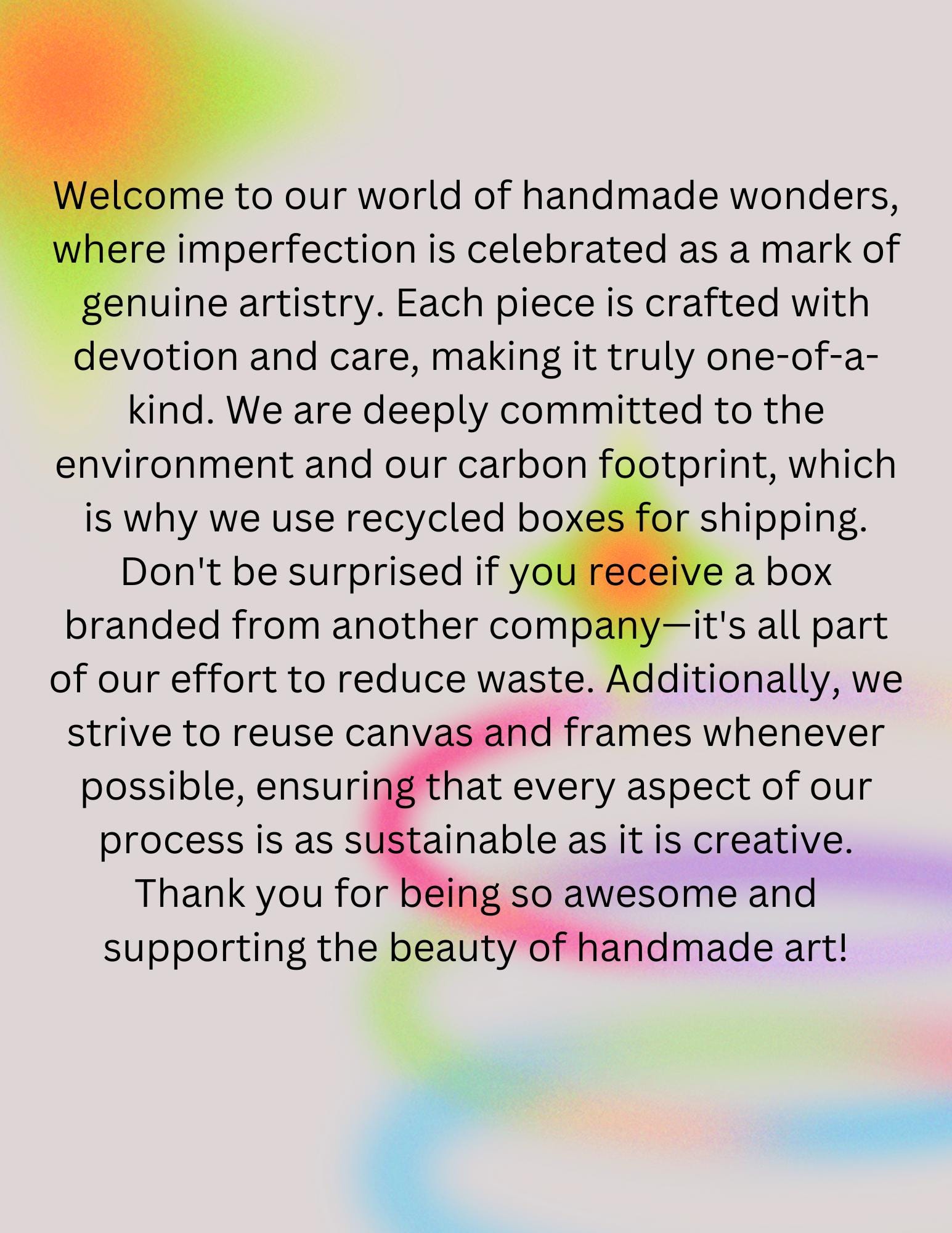 *The canvas is upcycled from previous works of art that have been painted over to give texture and depth to the piece. You never know under there may be a Picasso.