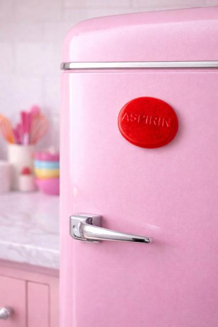 This resin magnet transforms the recognizable aspirin tablet into a small pop art object. Cast in saturated red resin with raised lettering, the piece shifts something ordinary into something playful, graphic, and permanent.
