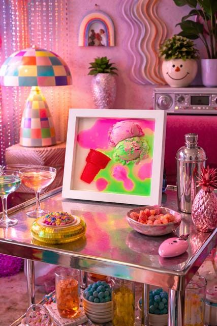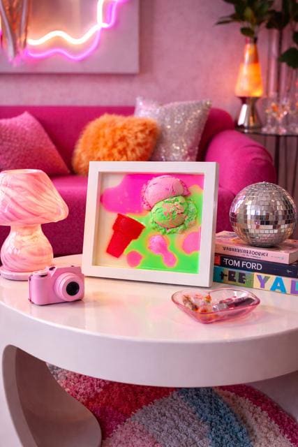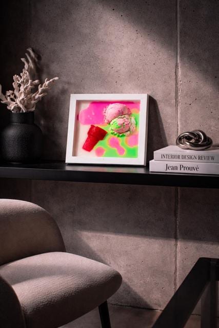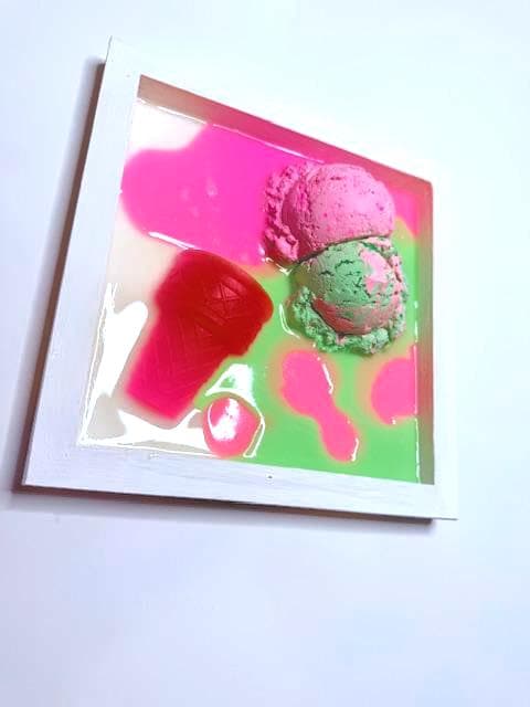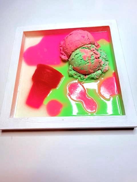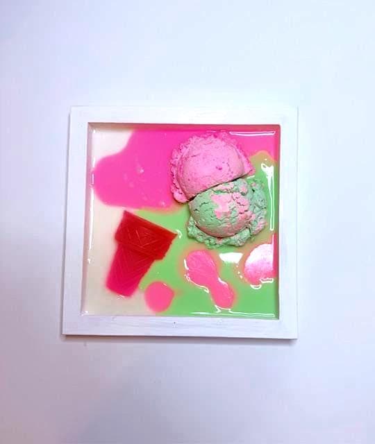 Hand-poured neon resin surrounds a dimensional ice cream form, creating a high-gloss pop art effect that feels playful, bold, and slightly rebellious. The melt is intentional. The drip is controlled. The color is unapologetic.
